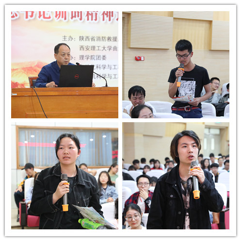 伴随着激昂的国歌声,本次活动正式拉开帷幕。陕西省消防救援总队四名优秀的消防员分别进行了宣讲。他们用通俗易懂的语言,宣讲“小故事”讲述“大情怀”,结合自身在实际工作中的切身体会,向大家展示了和平年代“最可爱的人”的责任担当和无私表率。在场师生以热烈的掌声向英雄们致以崇高的敬意。随后,陕西消防救援总队防火专家杨增社向在场师生全面细致的讲解了校园常用消防安全知识。主持人就讲座内容向现场师生提问,同学们积极踊跃地举手回答问题,气氛热烈。