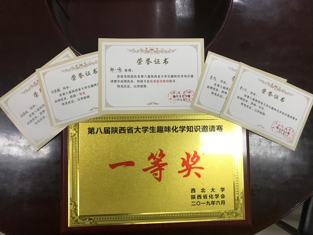 应用化学16级 李茂 一等奖、优秀队员