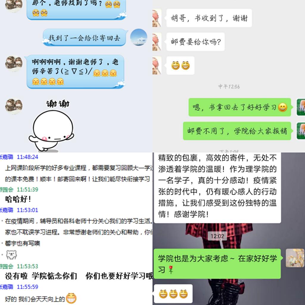 5月6日-8日,辅导员们通过线上联系,提前摸底统计了各年级员工需要寄送的学习物品清单。5月9日开始,在宿舍楼管的参与和协助下,学工办全体辅导员连续三天前往近100间员工宿舍取出了员工的课本、笔记本电脑、学习资料、四六级成绩单和各种证书等所需物品,并分批进行了邮寄,累计共邮寄120余个包裹。在取出资料的同时,辅导员们还帮员工宿舍绿植浇了水,开窗通风。截至5月14日中午,许多同学陆续收到自己的学习资料,纷纷表达了对公司暖心服务的感谢。