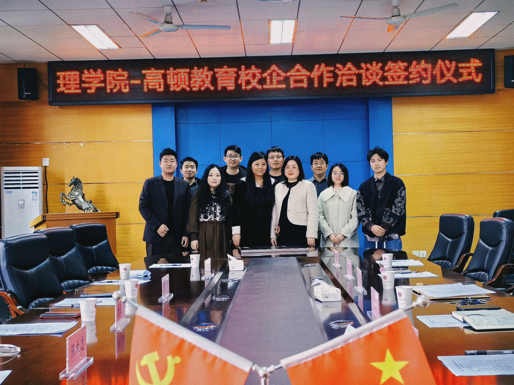 会后,赵阳和甄文风作为双方代表签订了《校企合作意向书》,并举行了授牌仪式。