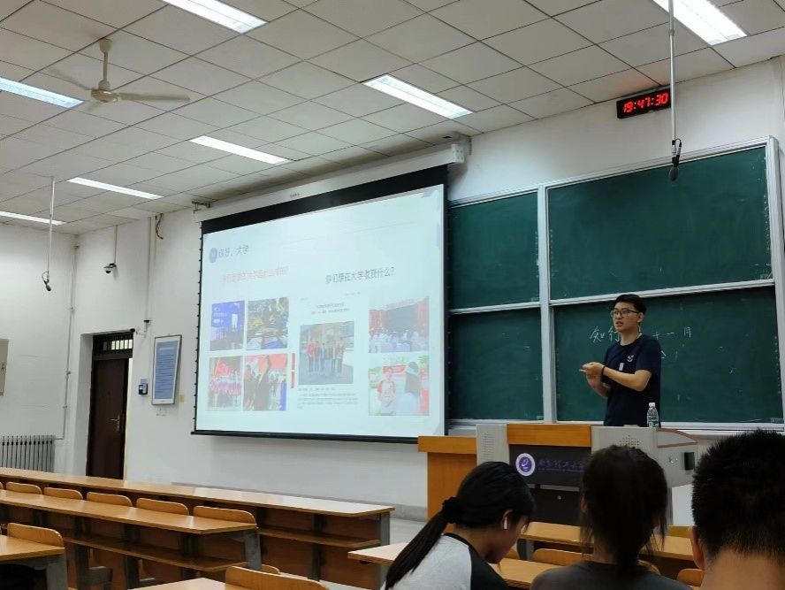 随后,胡扬帆结合自身参与学科竞赛经历,鼓励大家利用课余时间多参加活动,多读书,从中积累经验,了解自身的优点和不足,做一个全方面发展的合格老员工,要远离舒适区,切忌“走一步、算一步”,要有目标、有计划的度过大学时光。