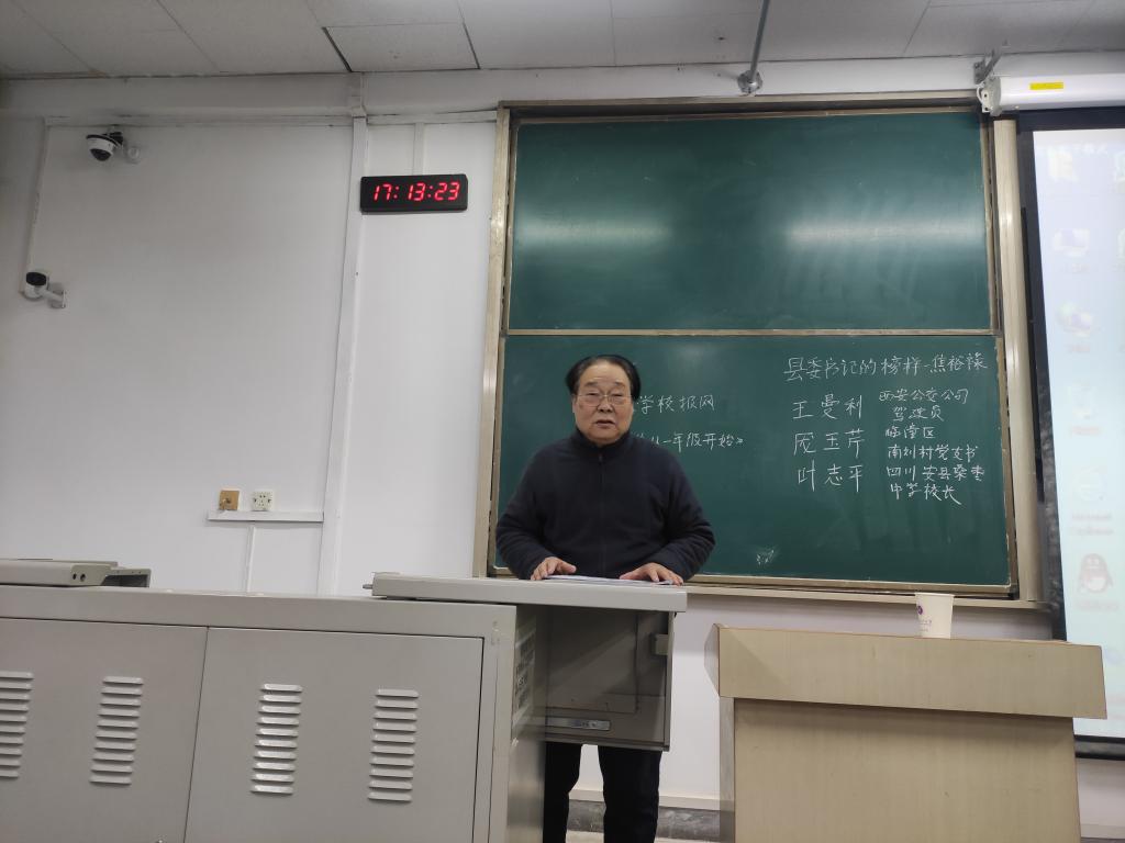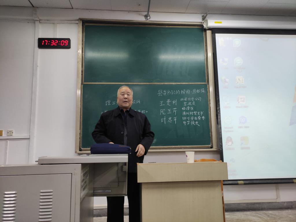 刘铁柱以学习习近平总书记在庆祝中国共产党成立100周年大会上的讲话和党的十九届六中全会精神为切入点,以《不忘初心、牢记使命》为主题,向大家讲述了带领全县人民攻坚克难、共同致富荣获“最美奋斗者”的河南兰考县原县委书记焦裕禄,带领村民成功致富自己却一贫如洗的临潼区南刘村党支部书记庞玉芹,热心服务公共事业在工作岗位上勤勤恳恳的西安市公交二公司驾驶员王曼利,用一生时间建设了一所教育质量优异、基础设施完备的四川省安县桑枣中学原董事长叶志平等四位普通共产党员的优秀感人事例,用身边的例子为大家生动的诠释了共产党人永远的初心和使命——为中国人民谋幸福,为中华民族谋复兴。他富有感情的讲述似乎把大家带回了那个年代,过程中几度哽咽,同学们眼眶多次湿润。