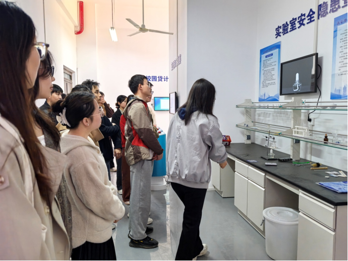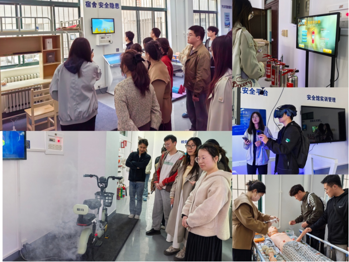 活动当日,同学们在辅导员刘梦老师的带领下有序进入体验馆。体验馆内设有交通安全、消防安全、网络安全、应急救援等多个模拟体验区,同学们通过VR设备、互动游戏、情景模拟等形式,身临其境地感受各类安全事故的发生过程并学习应对方法。在实验室安全环境模拟区,体验馆设置了8个实验室常见安全隐患点,刘梦老师带领大家进行了逐一识别,观看了警示视频,并强调了同学们要遵从老师安排,科学规范开展实验活动,不断增强实验室安全意识。