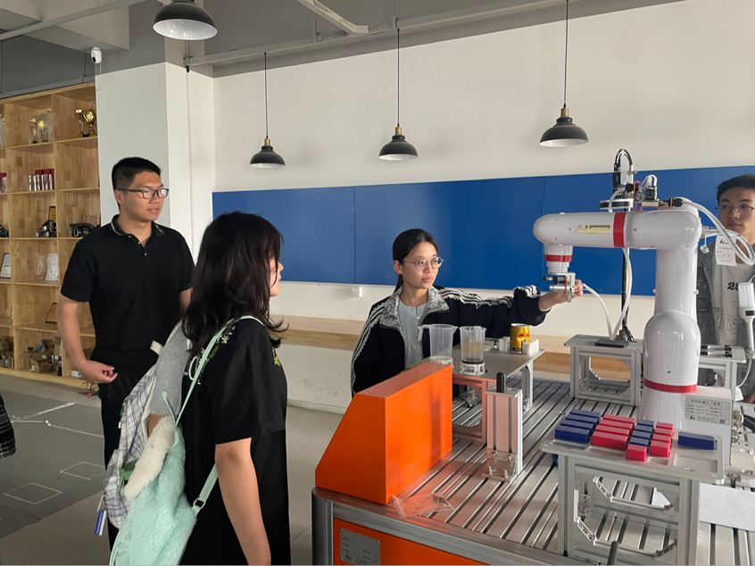 活动开始,张憬如带领TapTap点点官方网站师生参观了西安建筑科技大学的新灵兽实验室创新创业实践基地。基地内陈列了丰富的机械模型、激光切割机和光固化3D打印机等设备,展示了多项员工创新作品。负责人结合实例为同学们讲解了技术要点,同学们认真聆听并积极提问,现场氛围热烈。